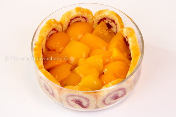 • 1 большой бисквитный рулет с джемом, нарезать на ломтики толщиной 1 см